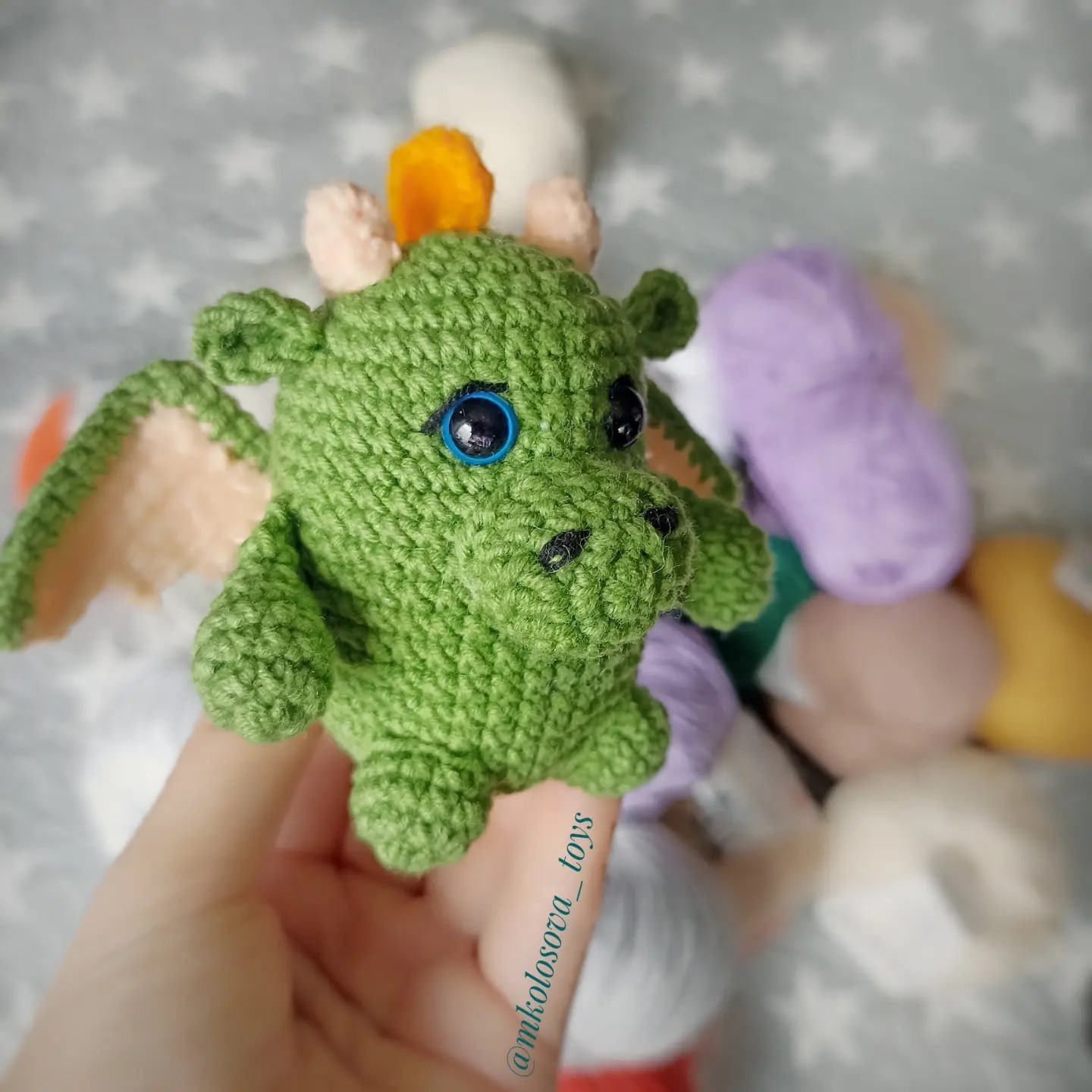 PDF Дракоша "Киндер" крючком. FREE crochet pattern; Аmigurumi toy patterns. Амигуруми схемы и описания на русском. Вязаные игрушки и поделки своими руками #amimore - маленький дракон, дракончик из обычной пряжи, динозавр, динозаврик.