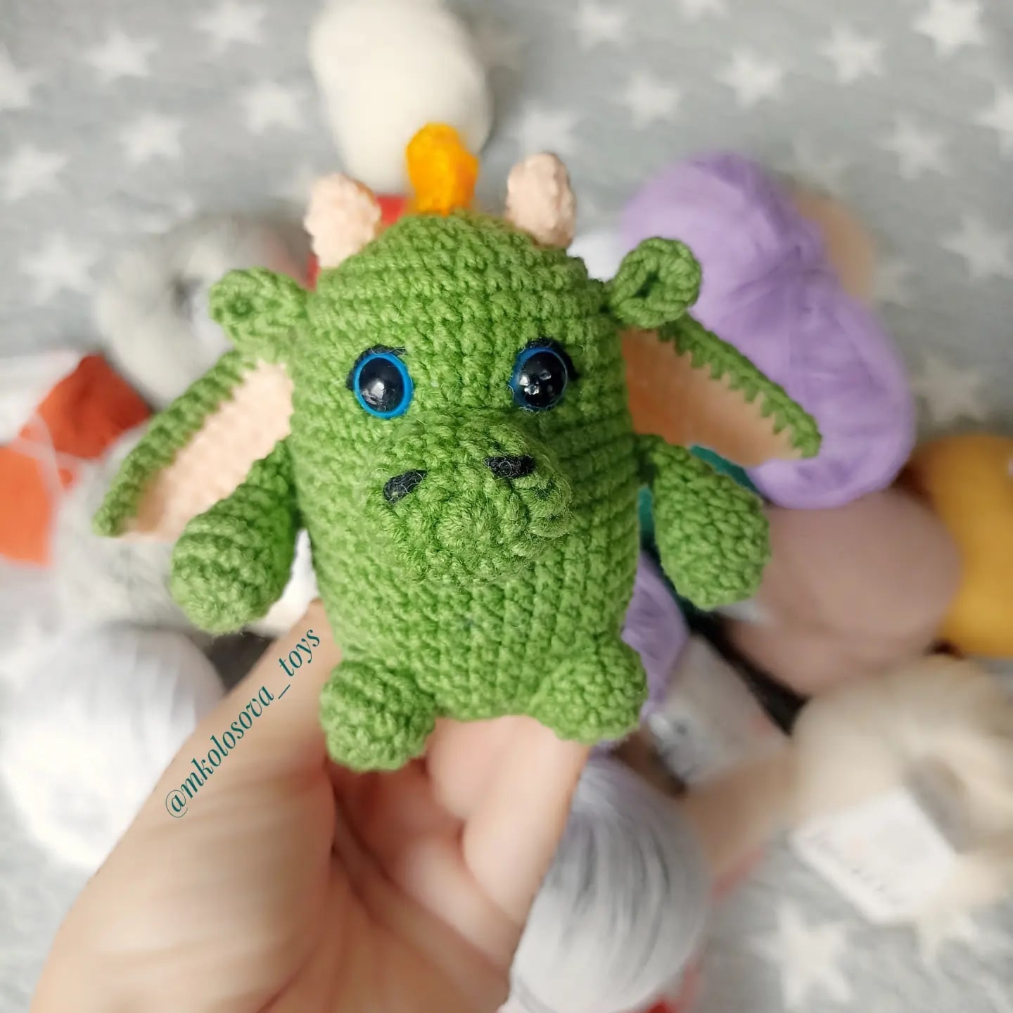 PDF Дракоша "Киндер" крючком. FREE crochet pattern; Аmigurumi toy patterns. Амигуруми схемы и описания на русском. Вязаные игрушки и поделки своими руками #amimore - маленький дракон, дракончик из обычной пряжи, динозавр, динозаврик.