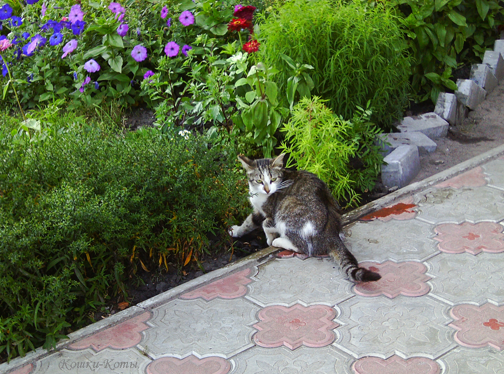 ✧ Что-то вид у этого кота какой-то подозрительный. Явно он что-то замышляет. То ли своровать что-либо хочет, то ли наоборот, спрятать. Например, прикопать в цветнике какие-то сокровища.