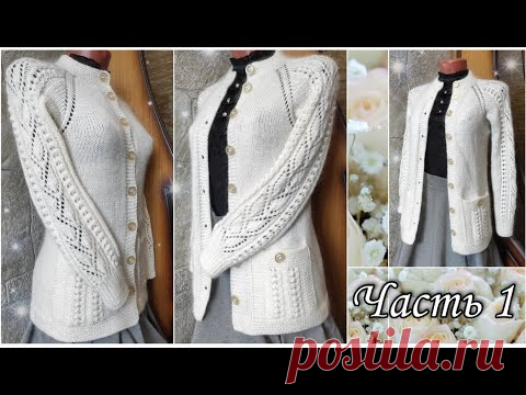 🌹Теплый, уютный и очень удобный женский кардиган на пуговицах спицами! Расчет на любой размер!Часть1