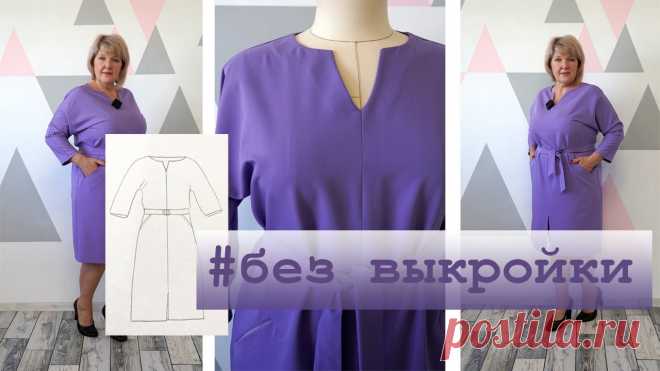 Элегантное платье без выкройки. Платье простого кроя с цельнокроеным рукавом и интересной горловиной Сегодня мы рассмотрим раскрой элегантного платья сразу на ткани. Это платье с цельнокроеным рукавом и интересной горловиной. На такое платье Вам понадобится...