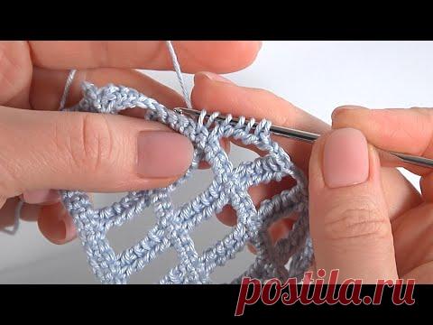 Нежные Тонкие Высокие столбики крючком/Ажурная "Сетка" крючком/Авторские столбики и Узор крючком