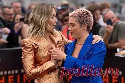 Британская актриса Эмили Блант едва не оголилась на ковровой дорожке перед журналистами на премьере фильма «Оппенгеймер» в Лондоне. Соответствующие кадры публикует PageSix. На размещенных кадрах видно, что знаменитость предстала в брючном блестящем костюме терракотового оттенка, блейзер которого частично обнажил ее грудь. При этом звезда продемонстрировала черный кружевной бюстгальтер, смущенно прикрыв его рукой. Кроме того, Блант распустила светлые волосы, уложив их в локоны. Актриса Флоренс Пью обняла коллегу и помогла ей вовремя спрятать область декольте, чтобы вновь позировать на камеру. На опубликованных фото видно, что звезда, в свою очередь, посетила красную дорожку в синем коротком платье с глубоким вырезом и без белья. Она дополнила образ золотыми украшениями с бриллиантами от бренда Tiffany & Co. Помимо этого, артистка надела белые туфли на тонком каблуке и сделала макияж в нейтральных оттенках. Ранее в июле Флоренс Пью вышла в свет в прозрачном платье без белья. Знаменитость посетила показ Valentino Haute Couture в прозрачном лавандовом платье длины макси с глубоким декольте и шлейфом. При этом на размещенных кадрах видно, что звезда отказалась от бюстгальтера, демонстрируя грудь.