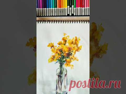 Жёлтый букет #акварель #какрисоватьакварелью #скетч