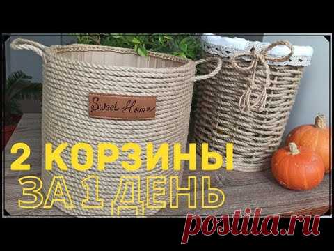 ИЗ ОБЫЧНОЙ ВЕРЕВКИ 2 ПОТРЯСАЮЩИЕ КОРЗИНЫ/ СВОИМИ РУКАМИ БОЛЬШИЕ КОРЗИНЫ ЗА 1 ДЕНЬ/ КОРЗИНЫ ИЗ ДЖУТА