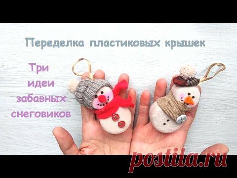 Снеговики из пластиковых крышек/ Snowmen made of plastic bottle caps.