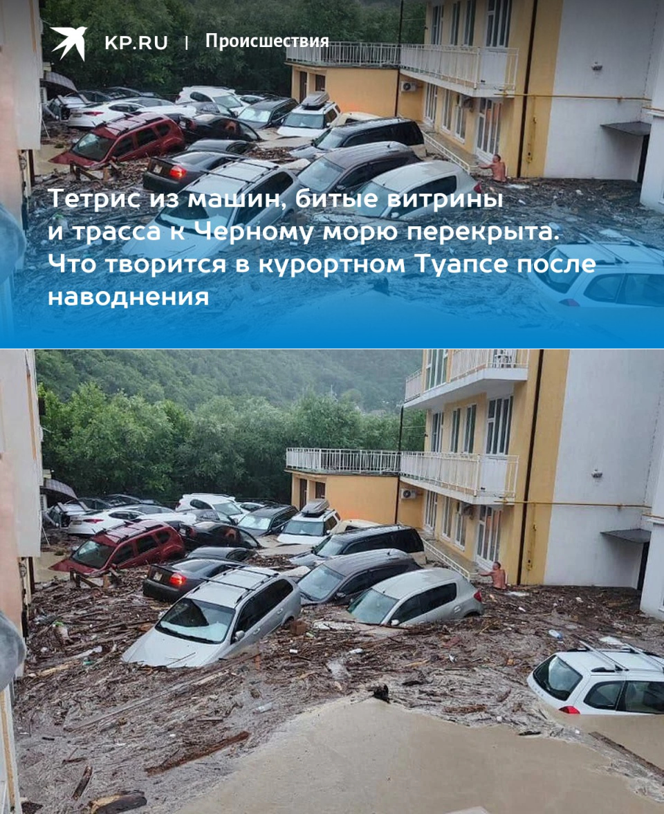 12-7-23-Тетрис из машин, битые витрины и трасса к Черному морю перекрыта. Что творится в курортном ТУАПСЕ после наводнения - KP.RU