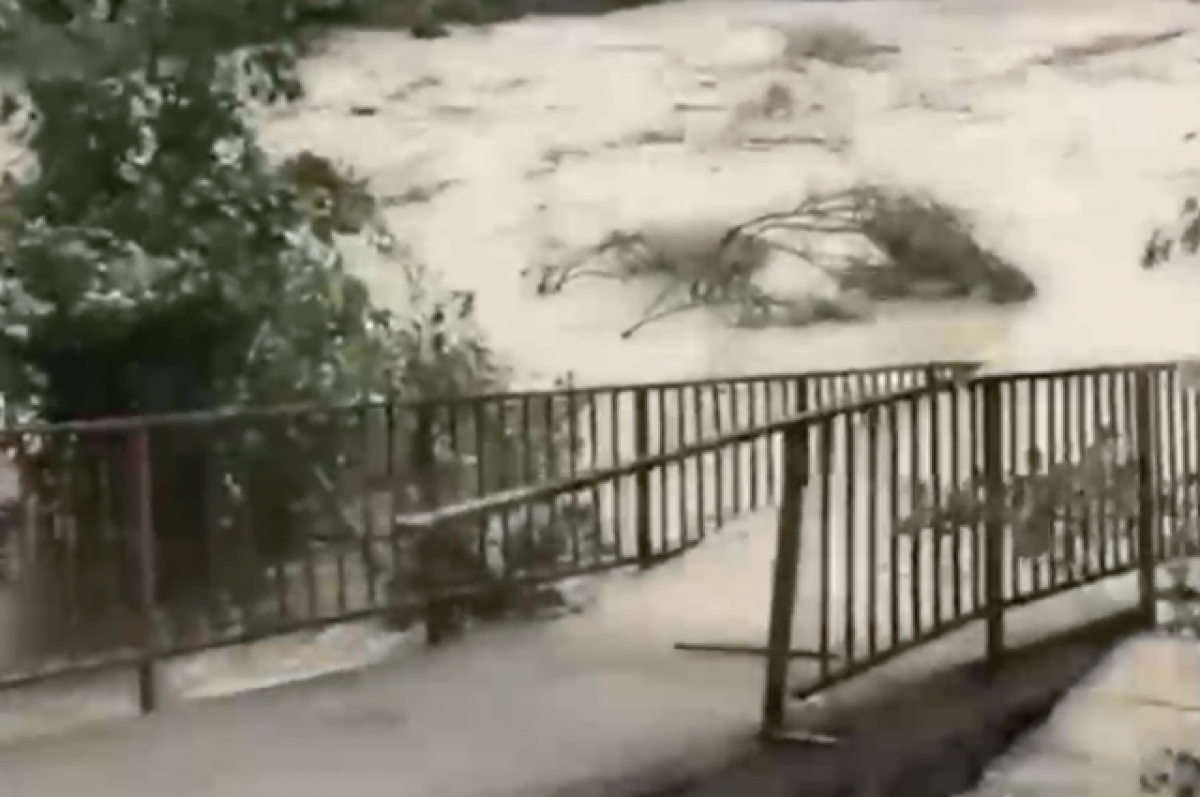 Очевидцы засняли, как бушующая река снесла мост под Туапсе. ЧП произошло из-за ливней в поселке Новомихайловском.
