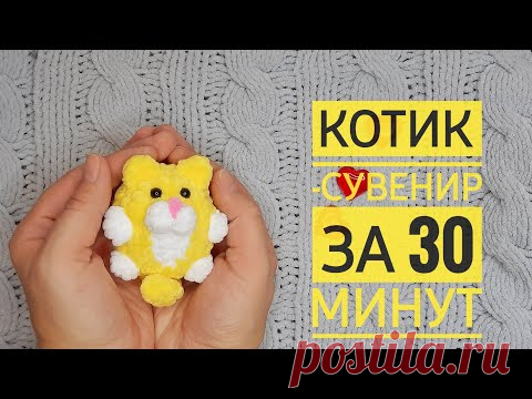 мастер класс по вязанию мини котика крючком из плюшевой пряжи #игрушказаполчаса