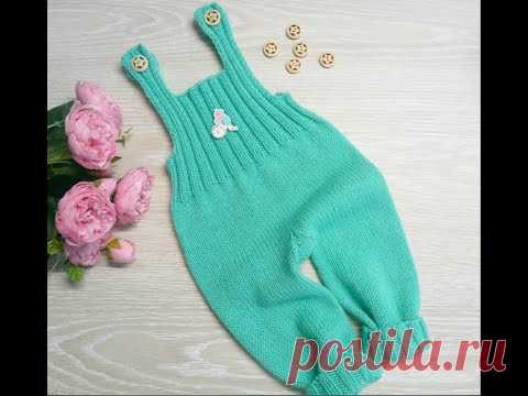 Детский полукомбинезон на бретелях спицами от 0-3 мес//МК