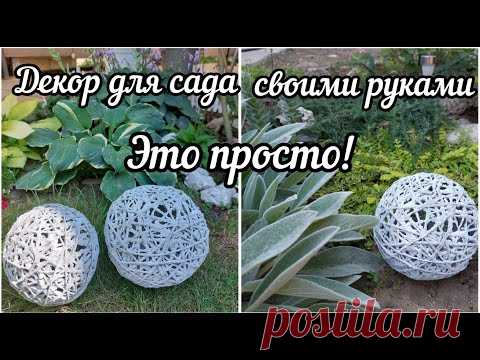 Взяла верёвку и цемент и быстро сделала декор для сада. Шар из цемента.