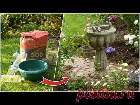 Из пластиковых бутылок и тазика Фикс Прайс - декоративная купальня для птиц своими руками