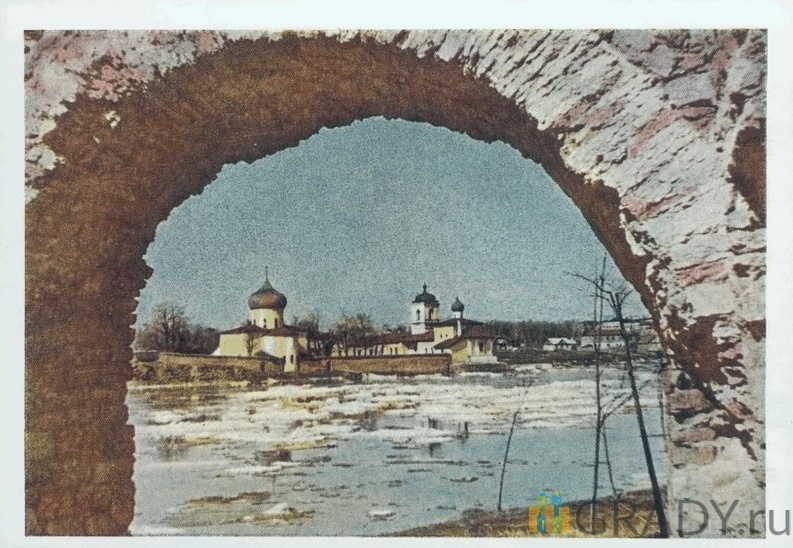 Псков, Россия - Покровские ворота. Вид на Мирожский монастырь (XII в.) - 1963-й год - г3084 | GRADY.ru