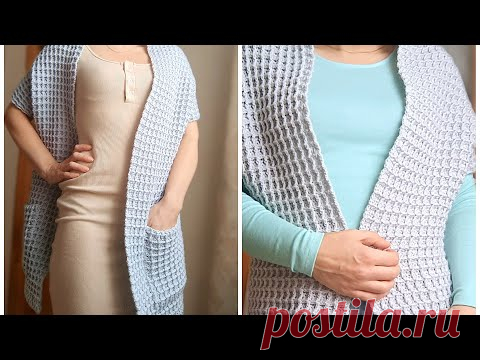 Два прямоугольника и кардиган готов!!! Кардиган крючком.
