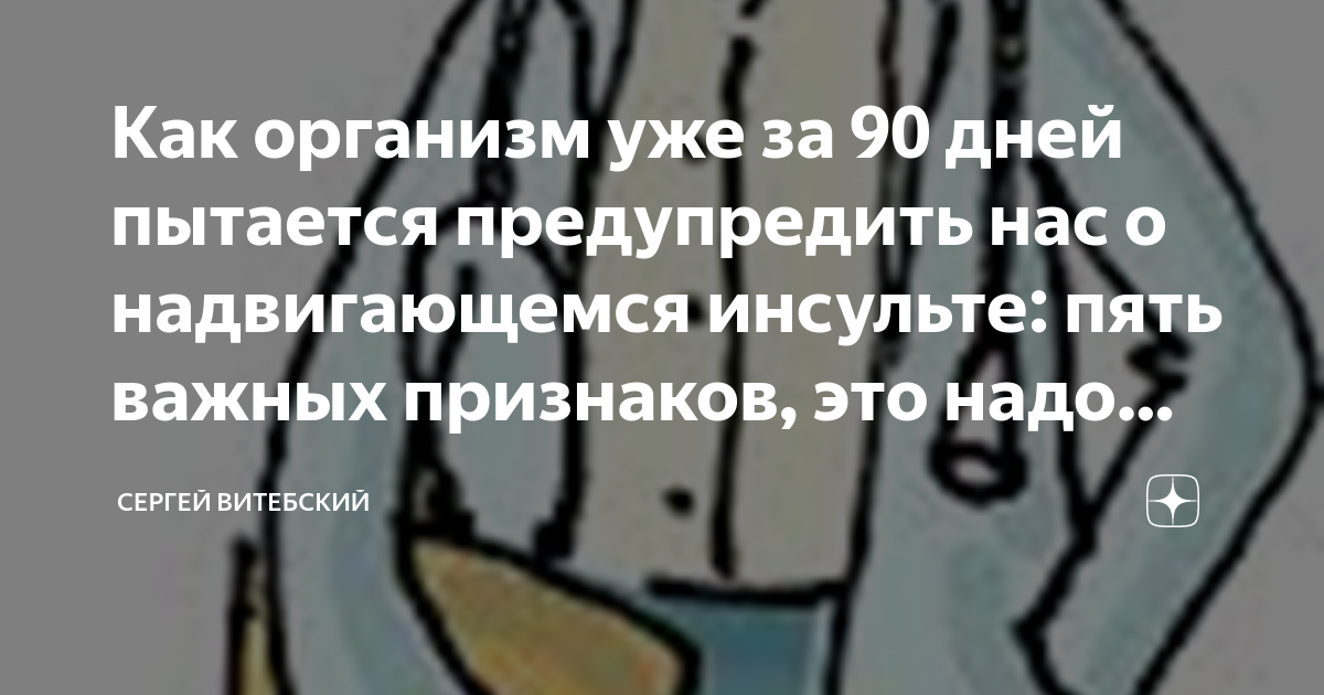 Как организм уже за 90 дней пытается предупредить нас о надвигающемся инсульте: пять важных признаков, это надо знать! Статья автора «Сергей Витебский» в Дзене ✍: Многие знают, что инсульт — это третья причина смерти для человечества, поэтому, все, что связанно с ним, волновало и еще будет долго волновать каждого из