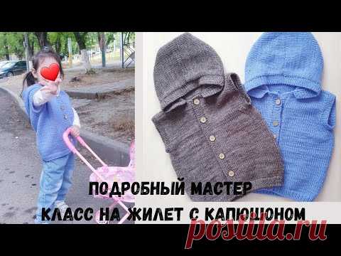 Подробный попетельный мастер класс на жилет с капюшоном.