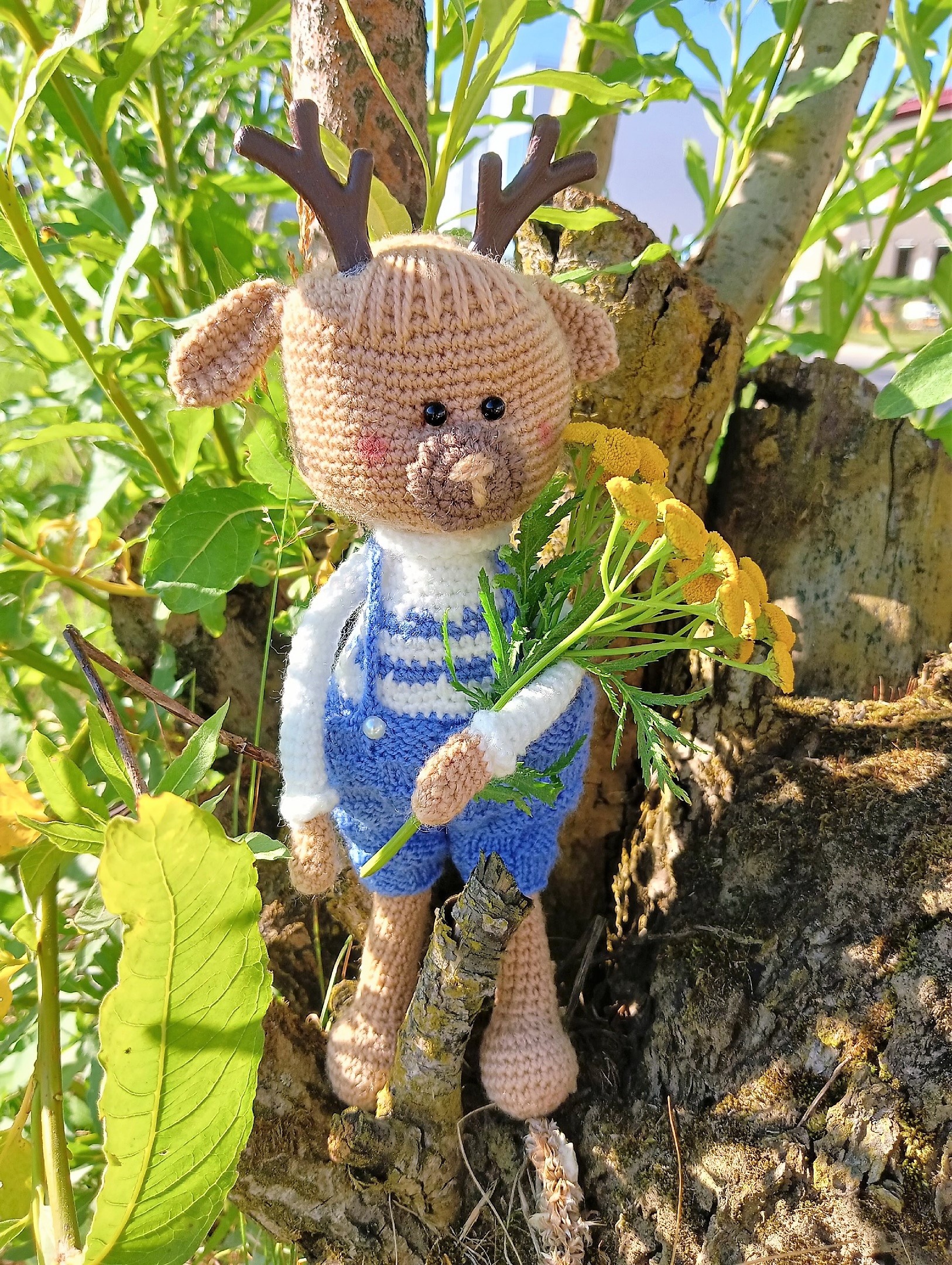 PDF Олежа крючком. FREE crochet pattern; Аmigurumi animal patterns. Амигуруми схемы и описания на русском. Вязаные игрушки и поделки своими руками #amimore - олень, оленёнок в штанишках.