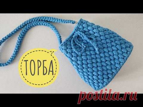 Сумка Торба Крючком из трикотажной пряжи. Узор Шишечки. Овальное донышко крючком. Ремешок крючком