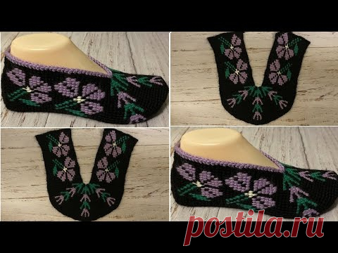 Тапочки - следки крючком. Тунисское вязание. // tunus patik