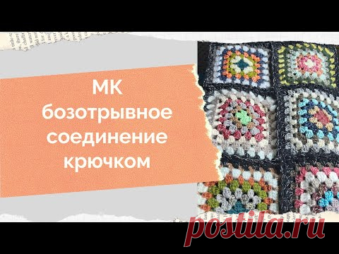 Безотрывное соединение бабушкининых квадратов крючком, плед крючком, бабушкин квадрат