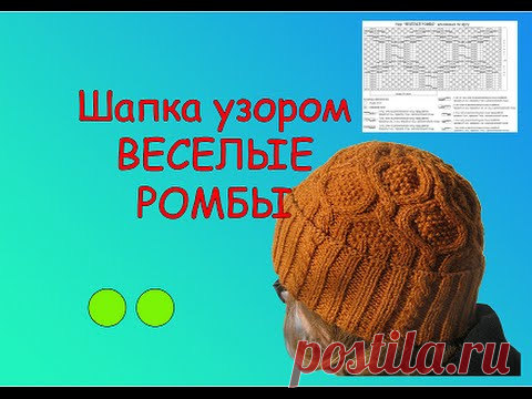 Как связать шапку спицами. #ШАПКА узором ВЕСЁЛЫЕ РОМБЫ с отворотом.