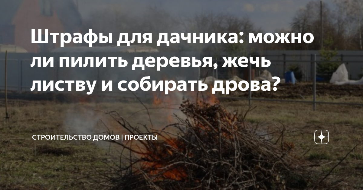 Штрафы для дачника: можно ли пилить деревья, жечь листву и собирать дрова? Статья автора «Строительство домов | проекты» в Дзене ✍: На каком расстоянии от дома можно жарить шашлыки, законно ли жечь листву, собирать валежник, грибы и ягоды в лесу или спиливать аварийное...