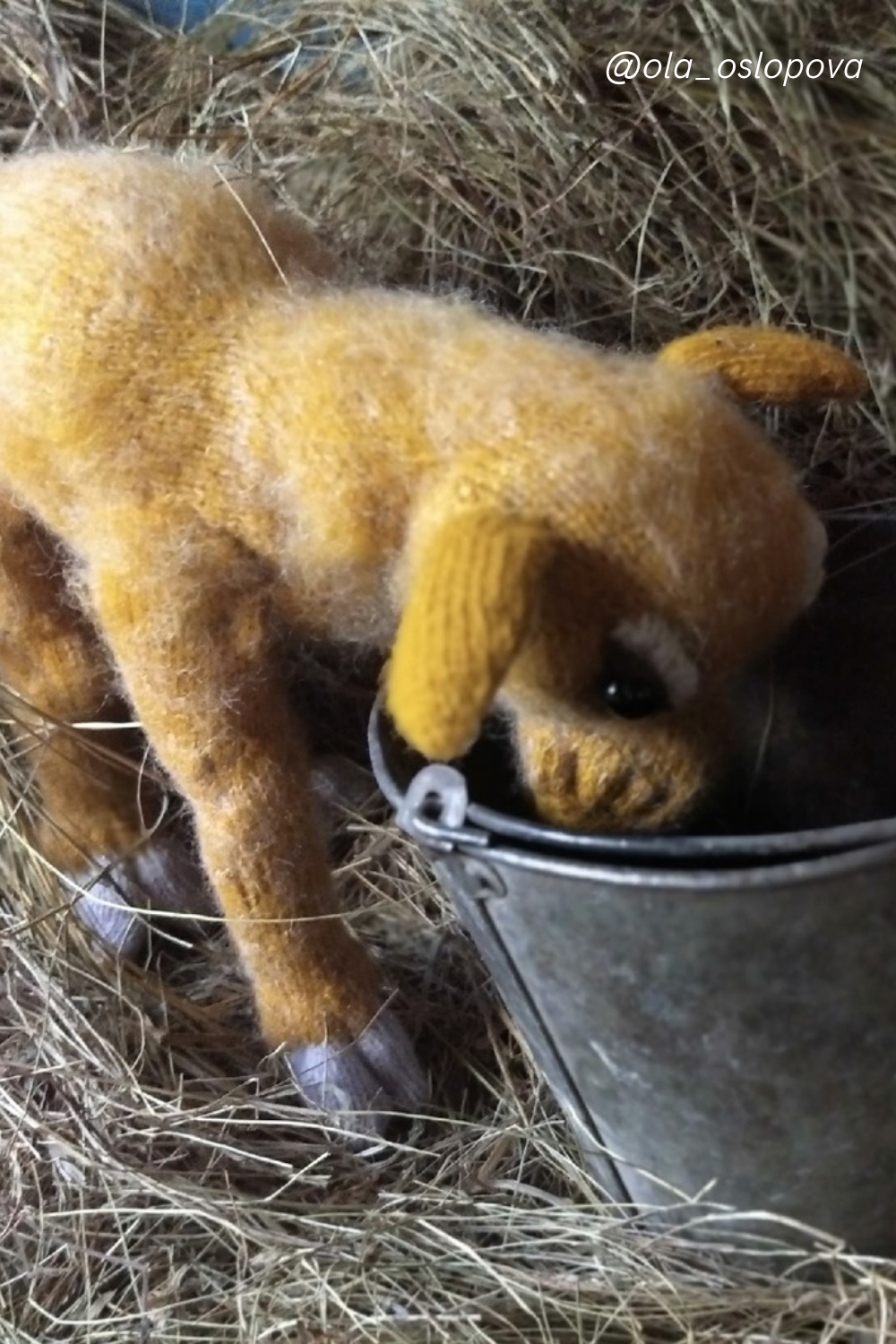 The toy knitting pattern is suitable for everyone. There are difficult moments, I tried to make the description as simple as possible. Photos of the calf knitting process will help you.