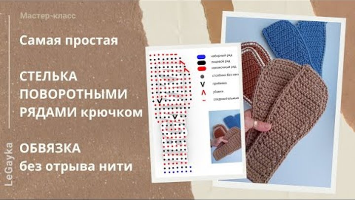 Самая простая стелька поворотными рядами крючком. Обвязка без отрыва нити.