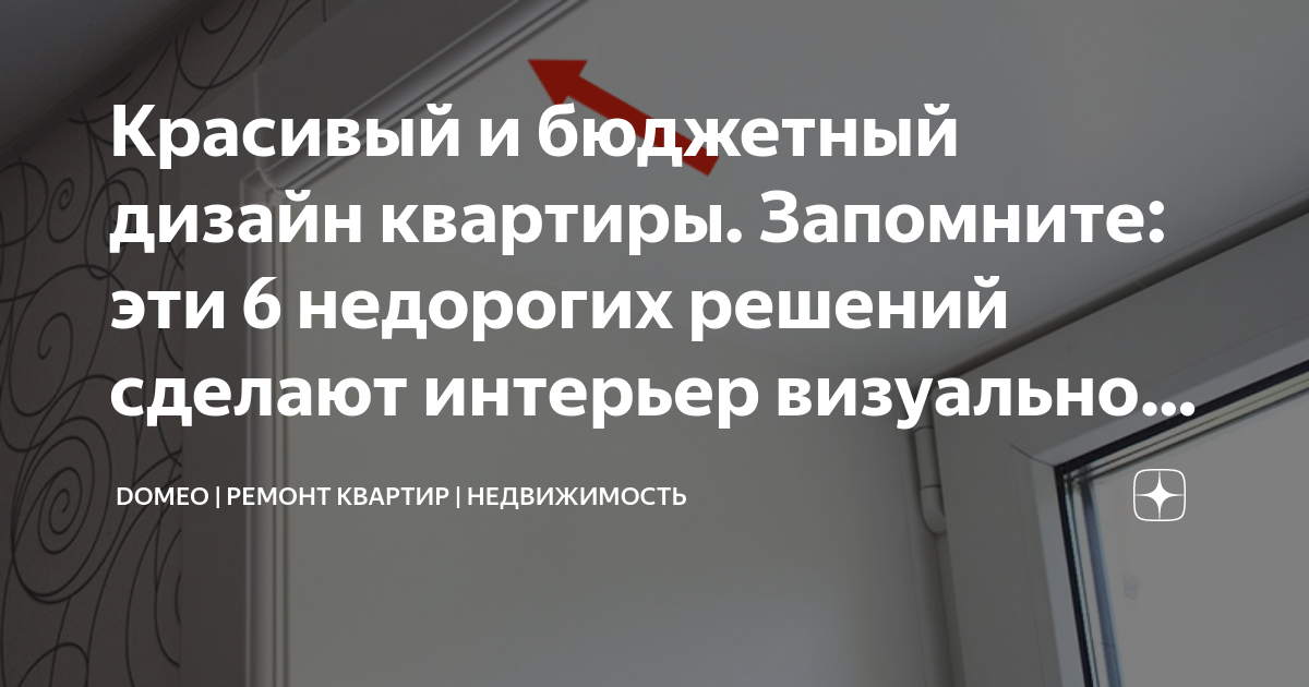 Красивый и бюджетный дизайн квартиры. Запомните: эти 6 недорогих решений сделают интерьер визуально дороже Статья автора «DOMEO | РЕМОНТ КВАРТИР | НЕДВИЖИМОСТЬ» в Дзене ✍: В данной статье рассмотрим приемы в отделке, которые не требуют больших финансовых вложений, но в то же время придают вашему интерьеру