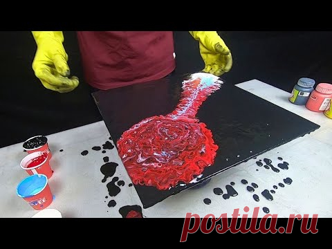 Simple Acrylic Fluid Art Texture with 4 Colors | Black, Crimson, Blue & White