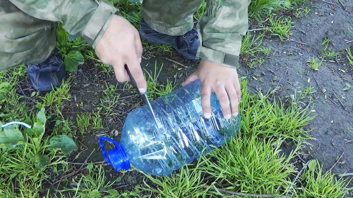 Как поймать рыбу с помощью пластиковой бутылкой У туристов бывают ситуации, когда возникают проблемы с едой. Если рядом есть водоем, то проблему можно решить даже при отсутствии удочек. Что потребуется для ловушки Приспособление изготавливается из пятилитровой пластиковой бутыли и веревки длиной 4–5 метров. Емкость разрезается обыкновенным