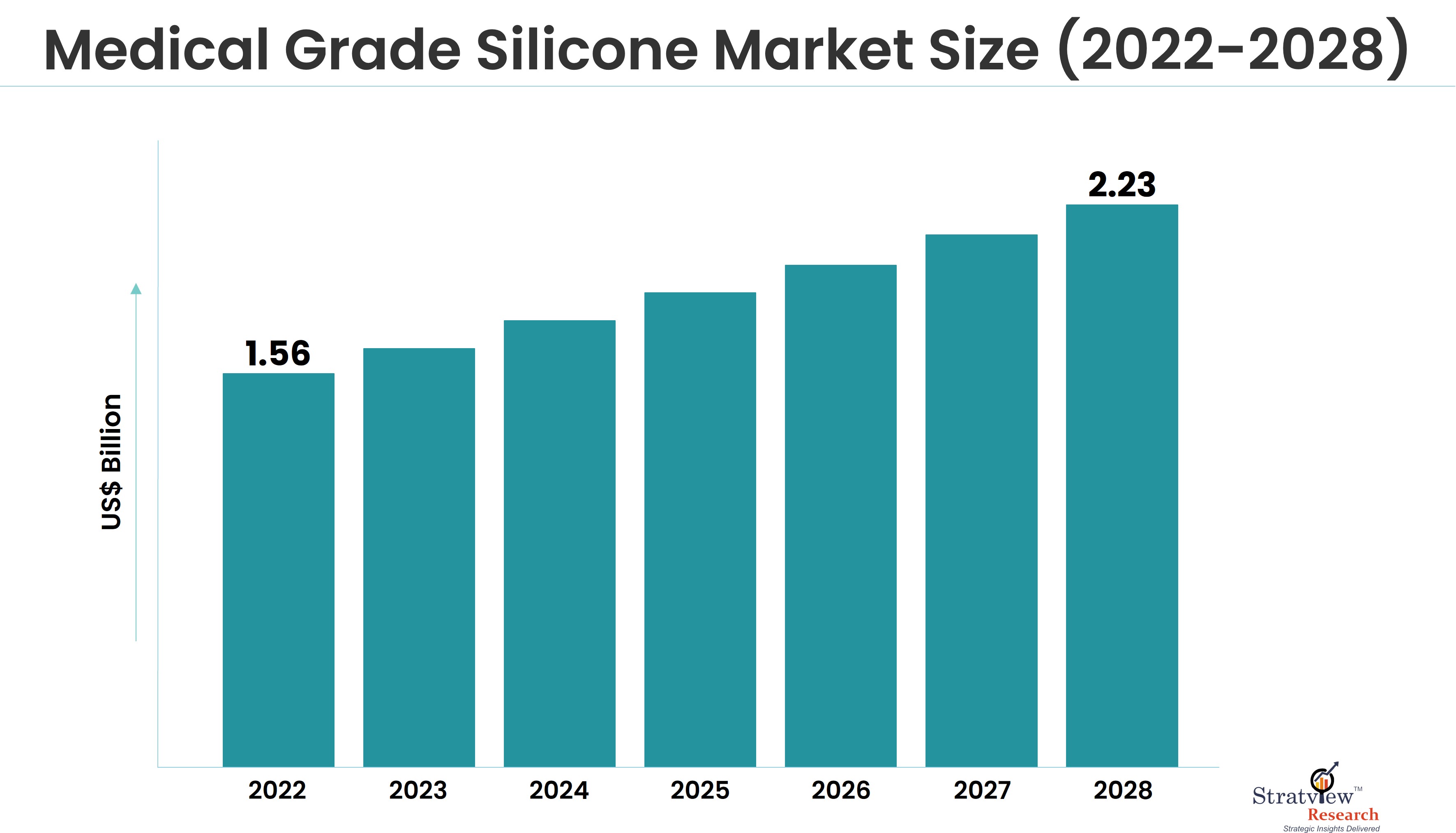 The Medical Grade Silicone Market is expected to grow from USD 1.56 Billion in 2022 to USD 2.23 Billion by 2028 at a healthy CAGR of 6.17% during the forecast period of 2023-2028.