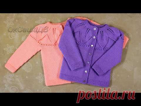 Бесшовная детская кофточка. Круглая кокетка с "Листиками"