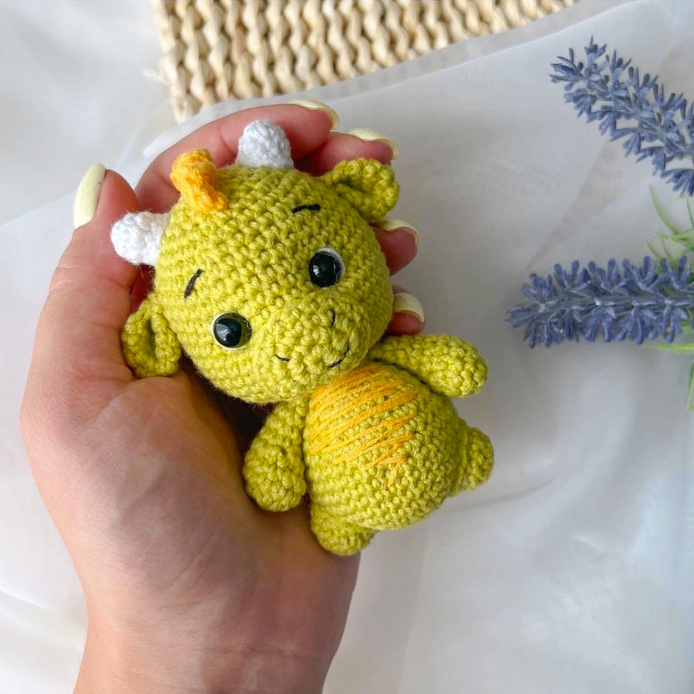 PDF Крошка Дракошка крючком. FREE crochet pattern; Аmigurumi toy patterns. Амигуруми схемы и описания на русском. Вязаные игрушки и поделки своими руками #amimore - маленький дракон, дракончик из обычной пряжи, динозавр, динозаврик.