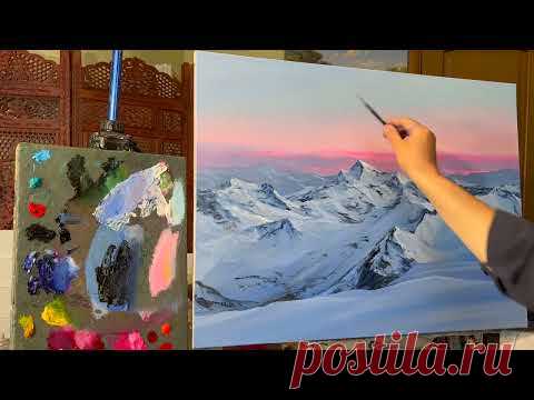 Пишем горы: "Горный пейзаж на рассвете" Художник Игорь Сахаров