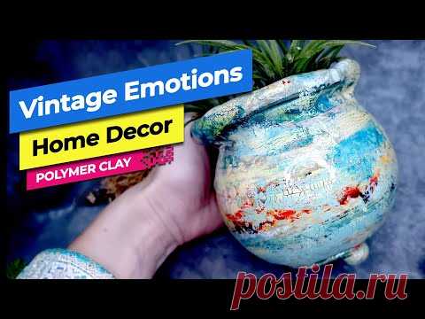 How to make amazing Flower Pot "Vintage Emotions" with cheap polymer clay! Home Decor DIY.
