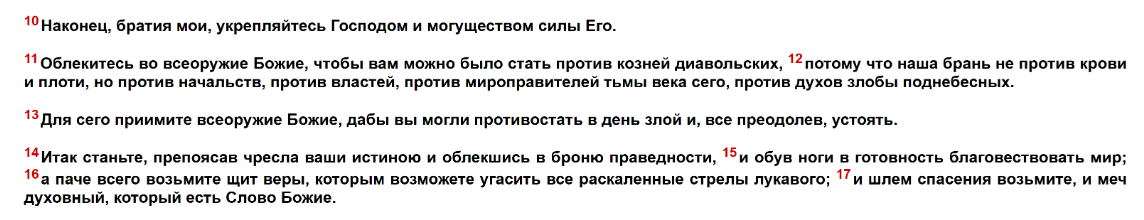 Послание к Ефесянам святого апостола Павла. Глава 6. + Православный Церковный календарь