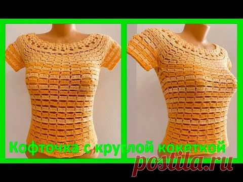 КОФТОчКА на КРУГЛОЙ кокетке , вязание крючком , crochet for women( В № №386)