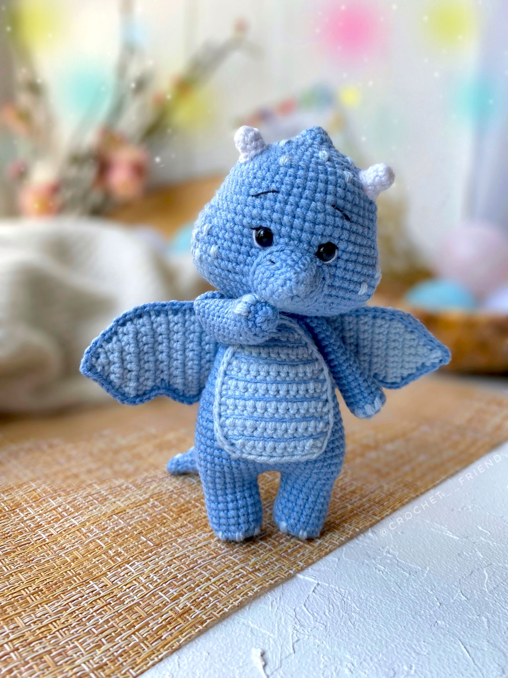 PDF Мини Дракон крючком. FREE crochet pattern; Аmigurumi toy patterns. Амигуруми схемы и описания на русском. Вязаные игрушки и поделки своими руками #amimore - маленький дракон, дракончик из обычной пряжи, динозавр, динозаврик.