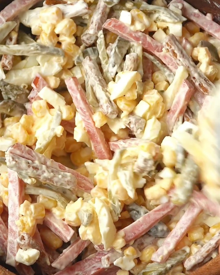 Салат за $1.5 😋 ⠀ Это вкусно и сытно. А самое главное, готовится очень просто. 😋 ⠀ Я использовал: 150 г сырокопчёной колбасы 100 г маринованных огурцов 130 г кукурузы 3 яйца 30 г сухариков Майонез по вкусу ⠀ Повторяйте за мной и будет вкусно! 😋 ⠀ Подписывайтесь, чтобы не пропустить следующее видео. ⠀ Приятного аппетита! 🥰 _____ Очень вкусный салатик 😋 ⠀ Этот салат сочетает свежесть помидоров и болгарского перца с мягкостью крабовых палочек и ароматным сыром, образуя ...