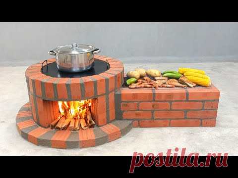 Как сделать дровяную печь 2 в 1 из красного кирпича и цемента просто и красиво