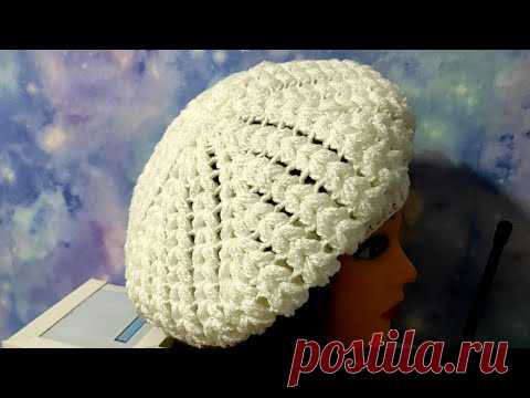 КРАСИВЫЙ БЕРЕТ ПЫШНЫМИ СТОЛБИКАМИ крючком. Подробное видео для начинающих.