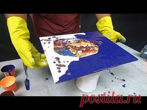 Easy Acrylic Fluid Art using Flip Cup Technique with 4 Colors