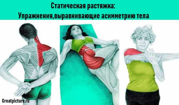 Статическая растяжка: Упражнения,выравнивающие асимметрию тела Статическая растяжка: Упражнения,выравнивающие асимметрию тела.Этот комплекс относится к простейшему способу омоложения. Суть его основана