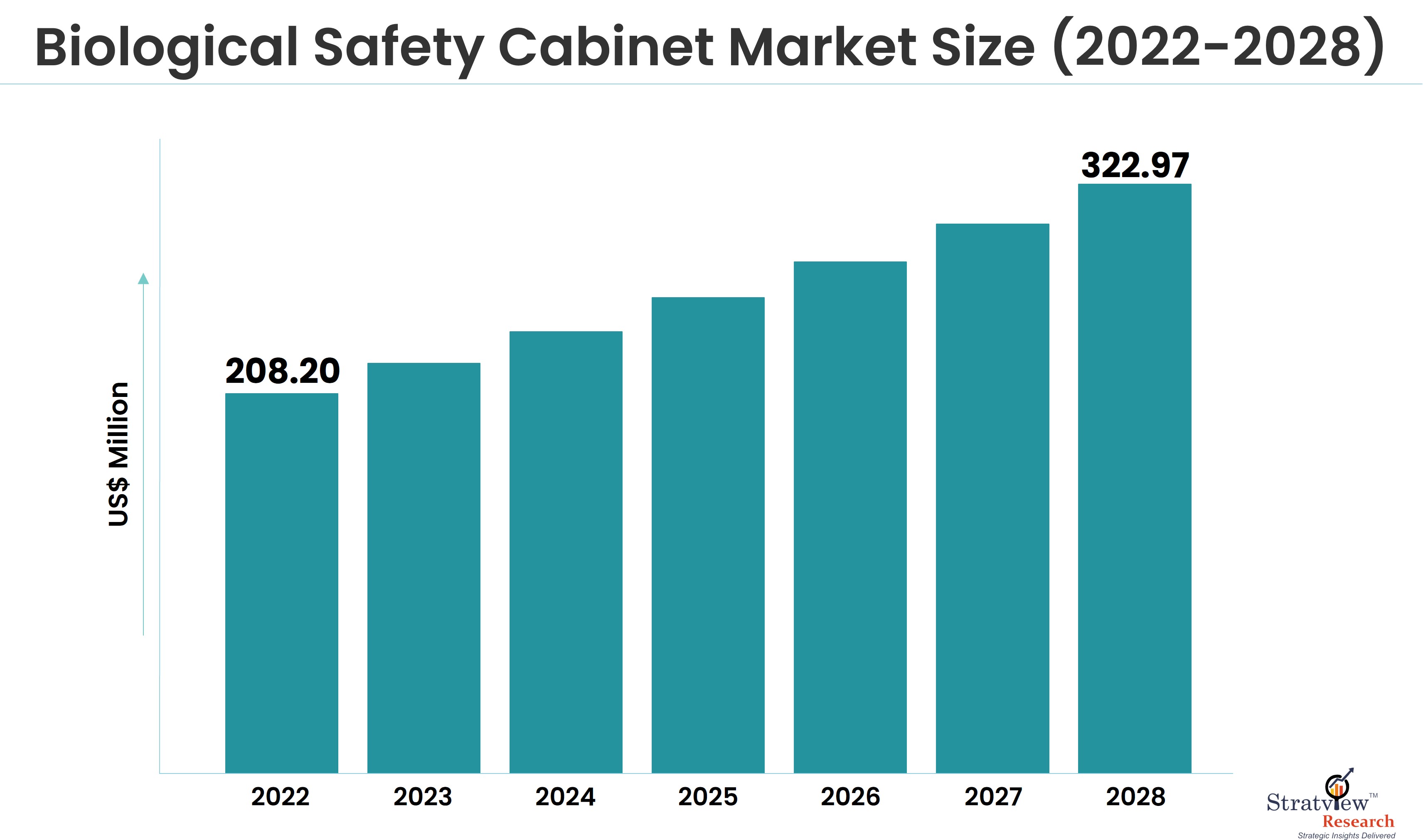 Biological Safety Cabinet Market Size, Share, Forecast, Industry, and Growth Analysis (2023-2028) The Biological Safety Cabinet Market is expected to grow from USD 208.20 Million in 2022 to USD 322.97 Million by 2028 at a healthy CAGR of 7.59% during the forecast period of 2023-2028. The major purpose of biological safety cabinets is to protect the laboratory worker as well as the surrounding environment from harmful pathogens.