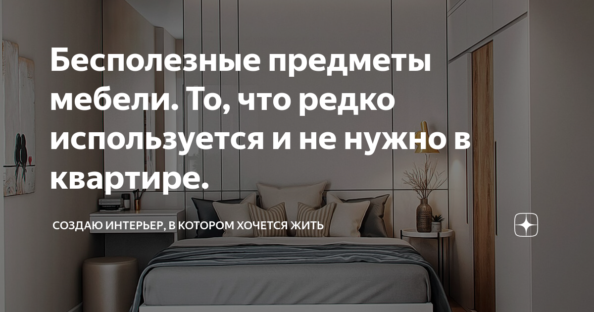 Бесполезные предметы мебели. То, что редко используется и не нужно в квартире. Статья автора «Создаю интерьер, в котором хочется жить» в Дзене ✍: За период моей многолетней дизайн-практики удалось выявить редкоиспользуемые и практически бесполезные вещи в квартире.