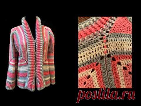 Crochet 2 Hexagons Cardigan / Jacket with Mandala yarn. Shawl Collar. Part 1 💞