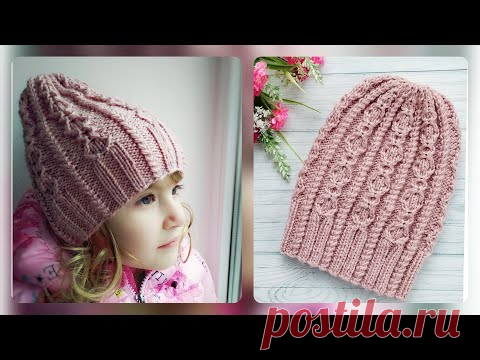 Подробный МК // Шапка спицами для девочки