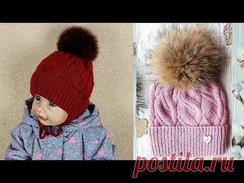 Шапка. Шапка с узором ложная коса. Подробный мастер- класс.🌸
