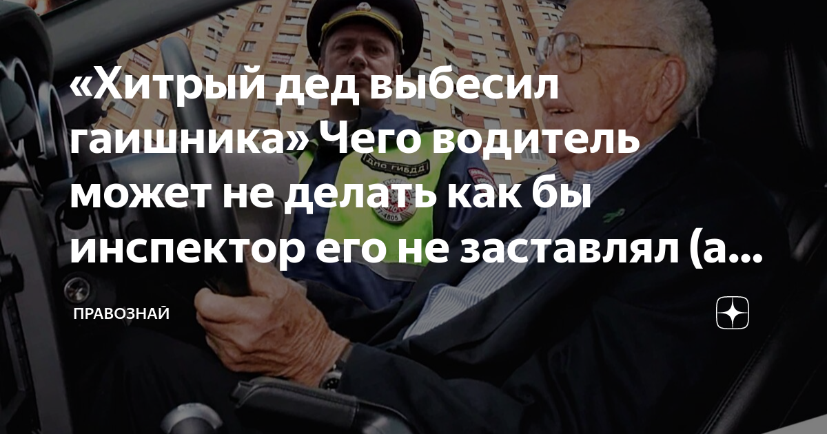 «Хитрый дед выбесил гаишника» Чего водитель может не делать как бы инспектор его не заставлял (а вы еще возите аптечку и огнетушитель) Статья автора «ПРАВОЗНАЙ» в Дзене ✍: Многие из нас сталкиваются на дорогах с наглыми сотрудниками ДПС.